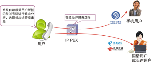 通過智能路由功能對酒店話務進行分流,使撥打的電話走最經濟的路由出局,同時也可根據時間、被叫號碼、IP網絡狀況智能選擇路由,有效地節省了酒店的通信費用。