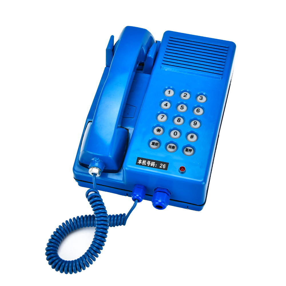 KTH防爆電話外殼采用抗靜電增強聚酯制作,防水、防塵、防腐、防護等級達IP65,適用于極為惡劣的環境。采用壁掛式安裝,采用新開發的叉簧開關機構,話機上無任何可動零部件。